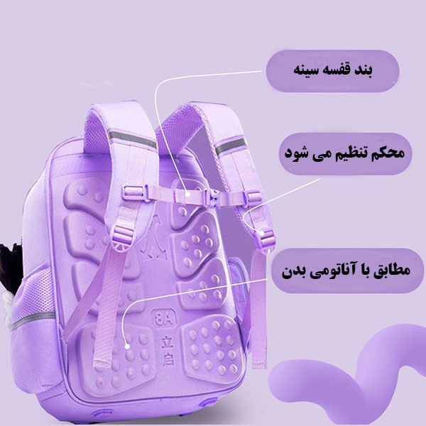 کوله پشتی دخترانه کرومی با رنگ بنفش راهراه و شخصیت کارتونی، برای دختران 6 تا ۱۲ سال طراحی شده است. این کوله دارای ۴ جیب (۲ جلو و ۲ کناری) و پد پشتی طبی با بند تنظیمی برای راحتی و حمایت از پشت است. جنس آن از پارچه ضدآب با دوخت باکیفیت و دارای نوار شبنما برای ایمنی است. ابعاد 30×16×39 سانتیمتر و وزن 450 گرم آن، استفاده روزمره و مدرسه را آسان کرده است. این محصول وارداتی با ظاهر شیک، ترکیبی از زیبایی، عملکرد و استحکام است.