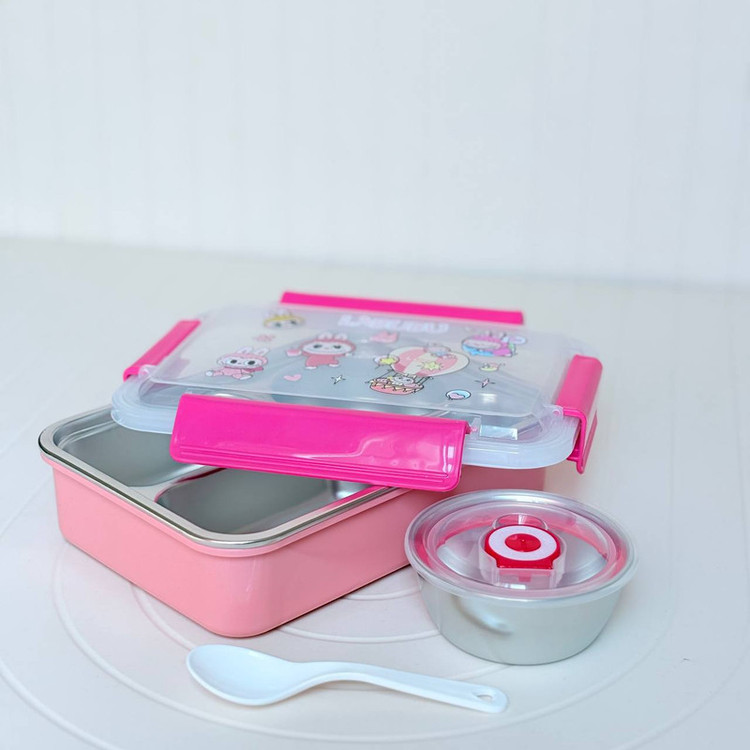 ظرف غذا مدل لانچ باکس لبوبو استیل به همراه قاشق