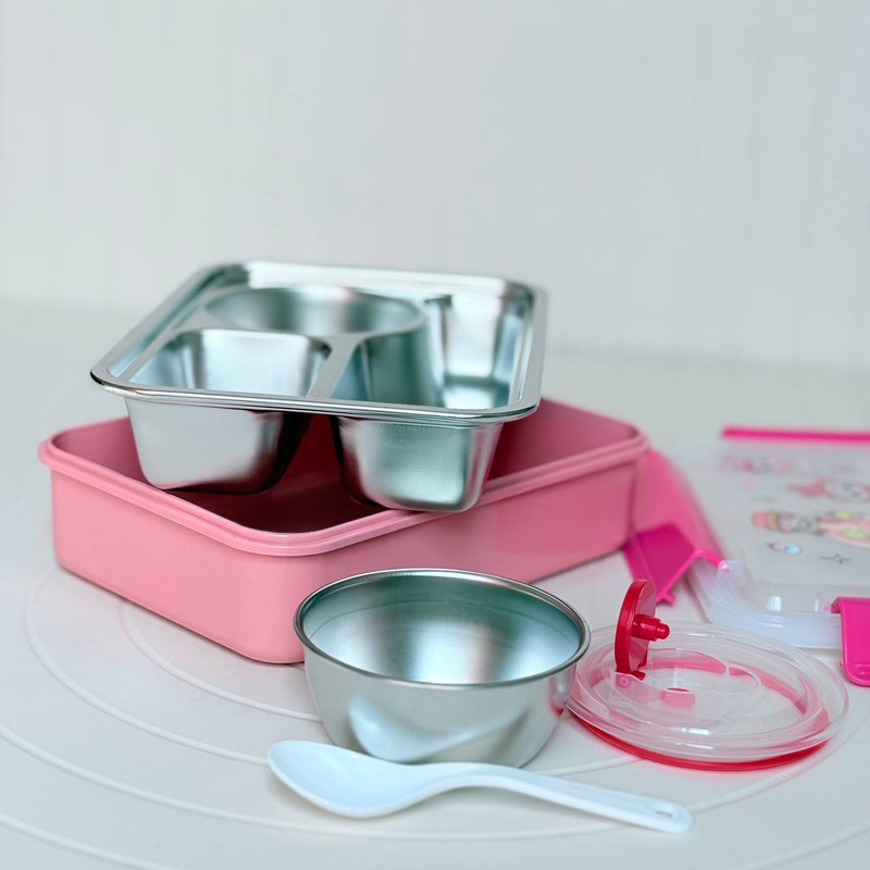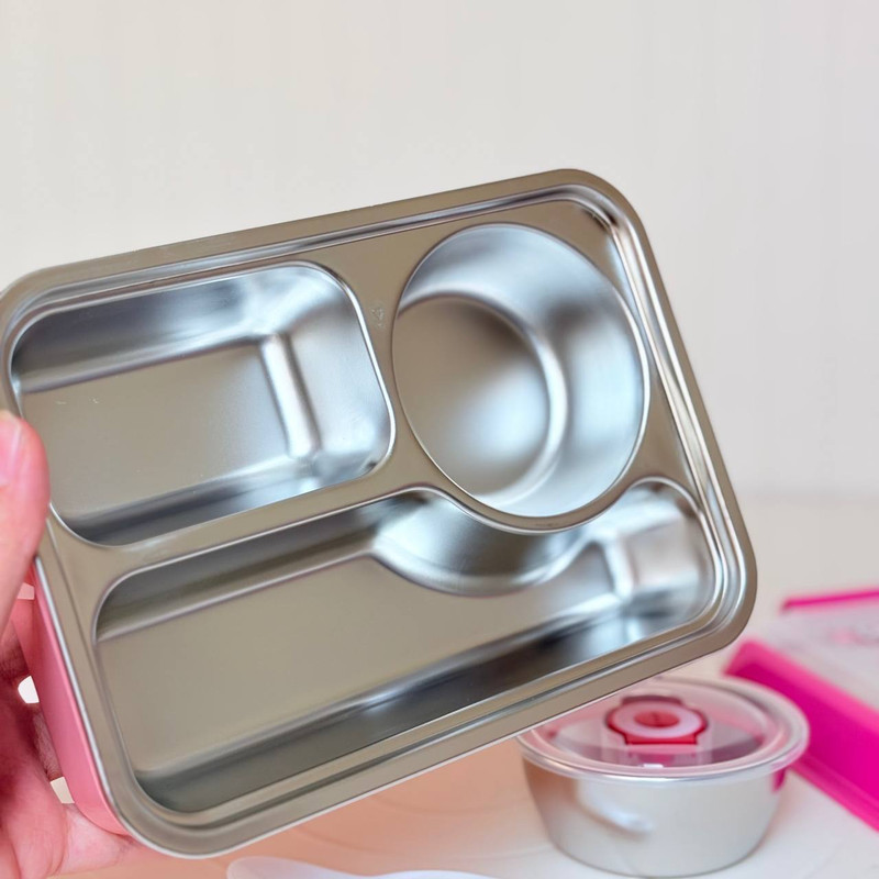 سه بخش مجزا دارد که دارای سه محفظه مجزا که به شما کمک میکند تا غذای اصلی، سالاد، میوه یا میانوعده خود را کاملاً جداگانه و بدون مخلوط شدن در کنار هم حمل کنید. همچنین دارای یک کاسه سوپ با درب واشر دار است که به هیچ وجه مایعات از آن پشتی نمیکند و سوپ گرم می ماند.