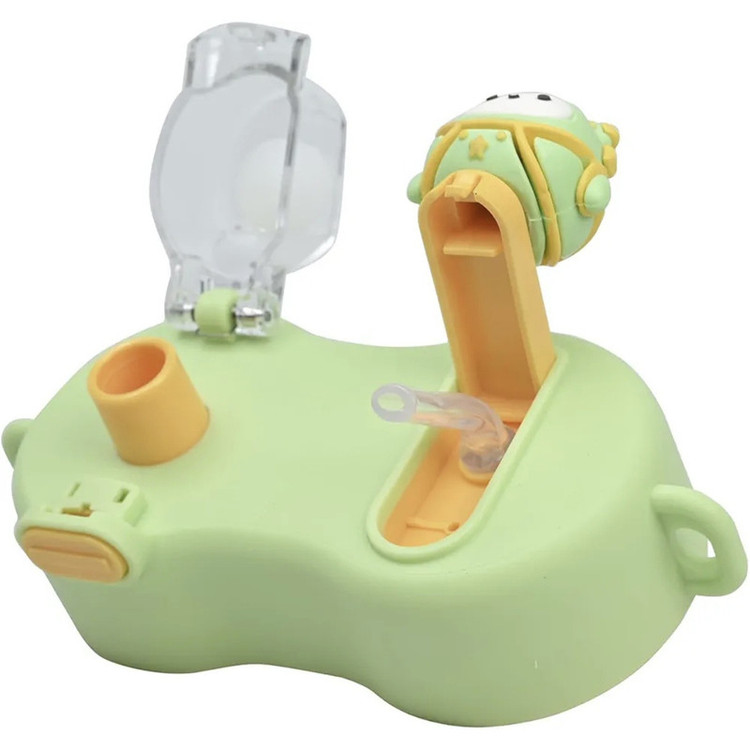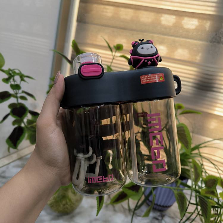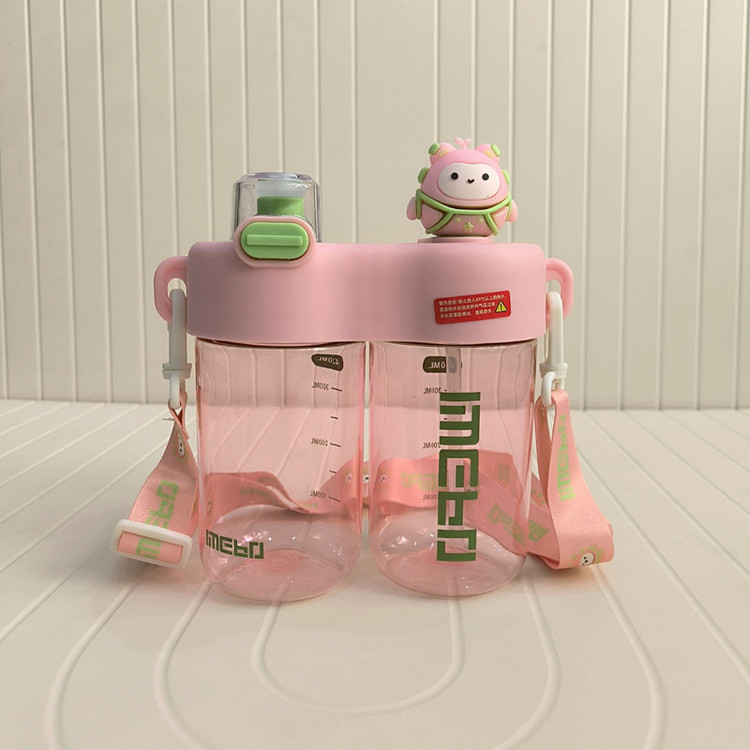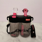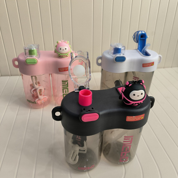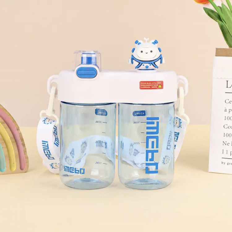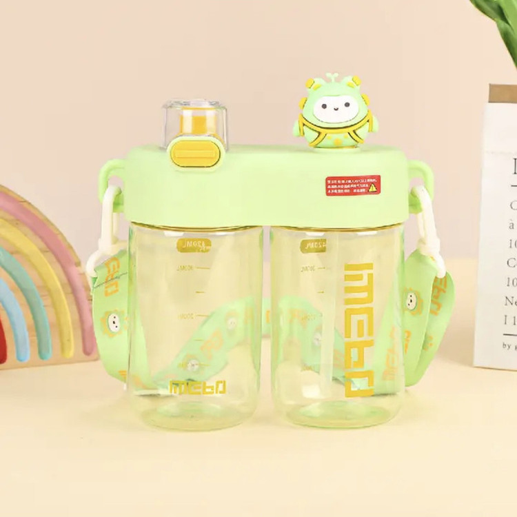 این قمقمه دارای دو مخزن کاملا مجزا است. یک مخزن درب آسان نوش و دیگری نی نوش دارد. حجم هر مخزن 420 میلی لیتر است که جمعا 840 میلی لیتر گنجایش دارد. کاملا ضد چکه است. درب ها دارای واشر هستند که ضد چکه بودن قمقمه را دو چندان می کند. سبکی و بند دوشی حمل را برای کودک بسیار آسان کرده است.