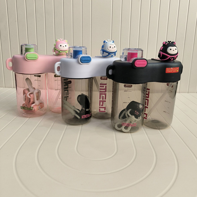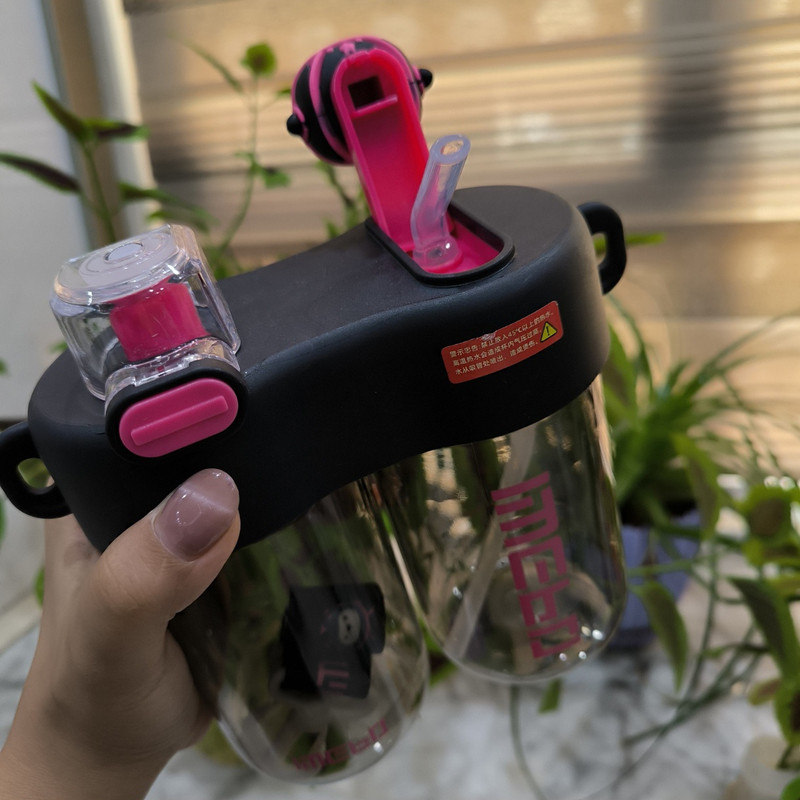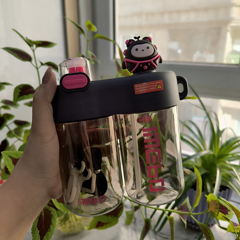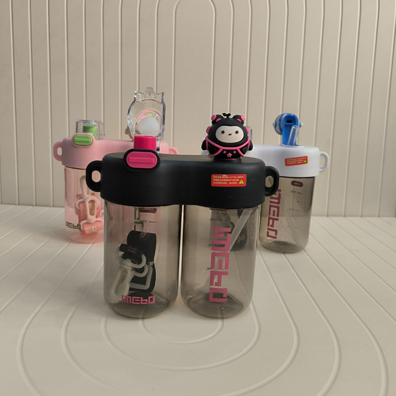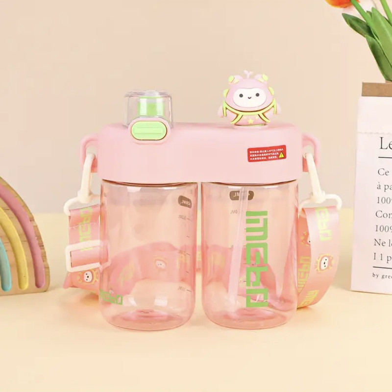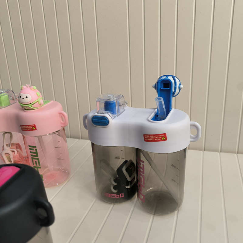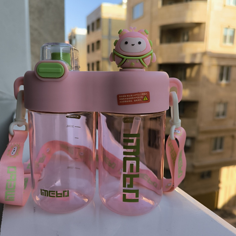 این قمقمه دارای دو مخزن کاملا مجزا است. یک مخزن درب آسان نوش و دیگری نی نوش دارد. حجم هر مخزن 420 میلی لیتر است که جمعا 840 میلی لیتر گنجایش دارد. کاملا ضد چکه است. درب ها دارای واشر هستند که ضد چکه بودن قمقمه را دو چندان می کند. سبکی و بند دوشی حمل را برای کودک بسیار آسان کرده است.