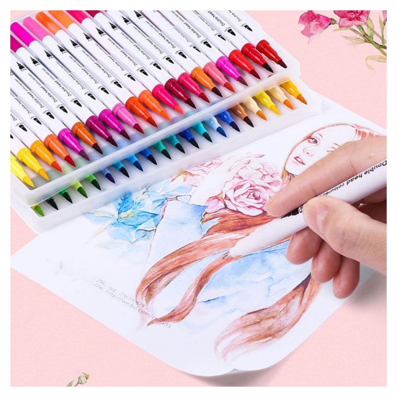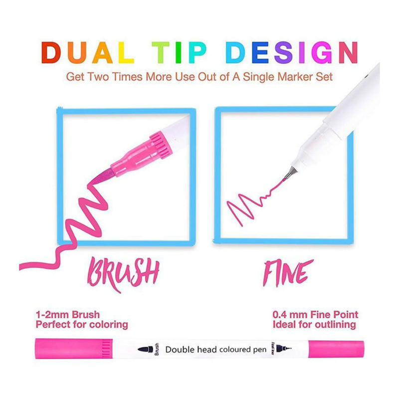 نشانگرهای رنگی 24 عددی دو سر به عنوان یک خودکار و یک نشانگر عمل می کنند. با درپوش در هر طرف، جابهجایی بین نشانگر و خودکار آسان است. ایده آل برای رنگ آمیزی و طرحی هستند.