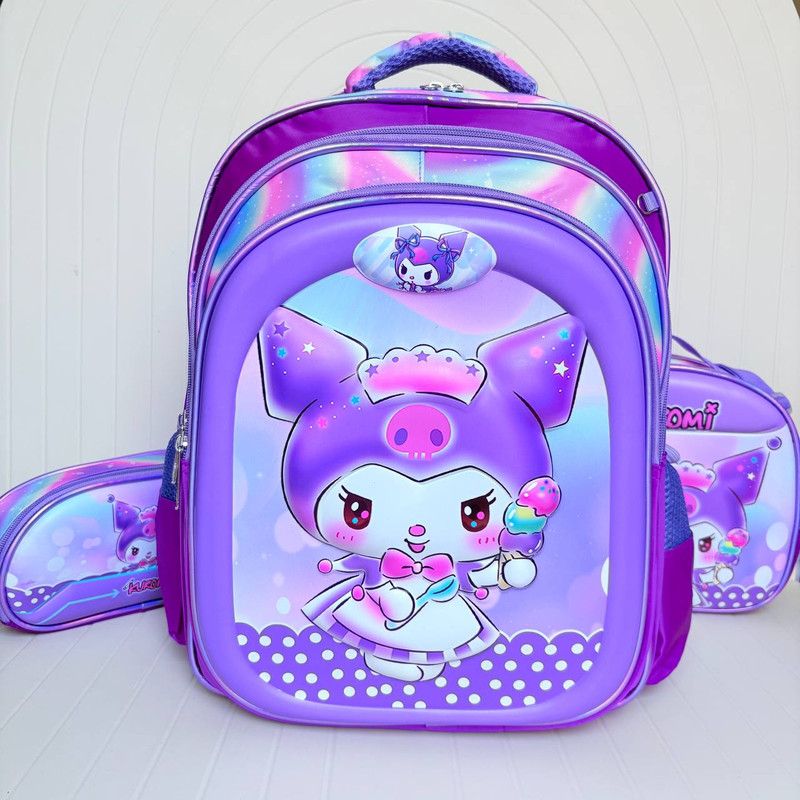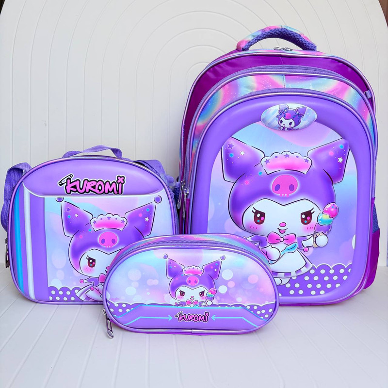 کوله پشتی مدرسه مدل کرومی به همراه جامدادی و کیف غذا