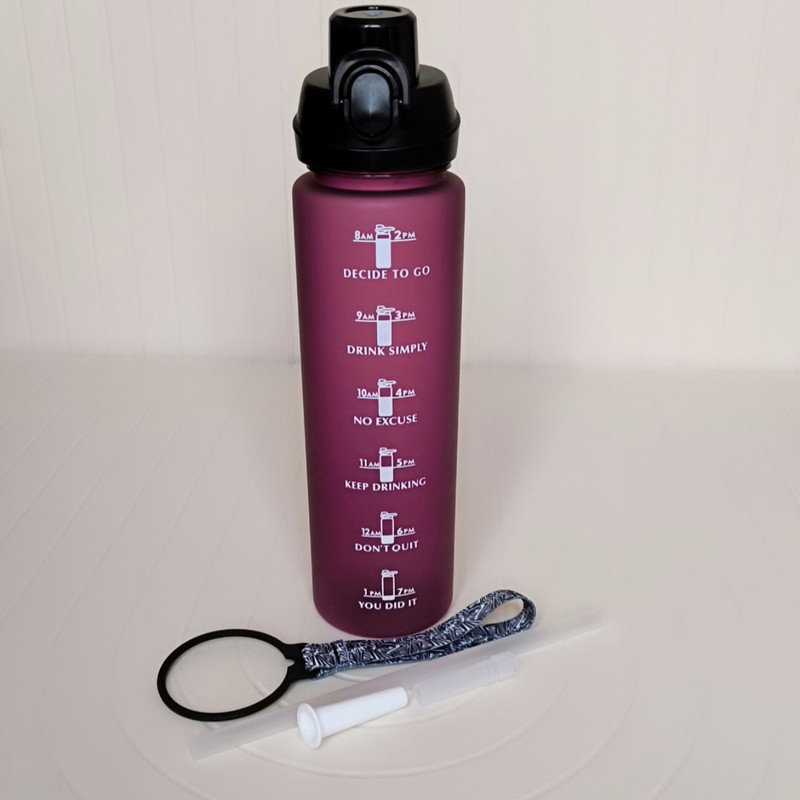 قمقمه وارداتی اکرولیکی است که دارای نی نوش و آسان نوش است. ضد چکه و درب آن قفل دارد. بسیار مقاوم در برابر ضربه است. دارای یک بند دستی جهت حمل آسان است. ظرفیت 1 لیتری دارد. همچنین مدرج شده و دارای جملات انگیزشی است.