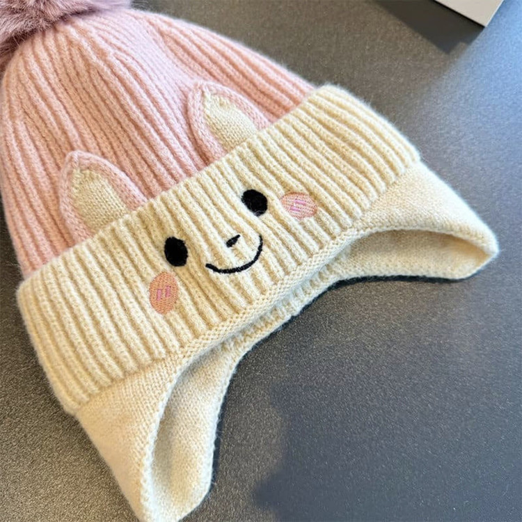 کلاه بافتنی بچگانه مدل گوش دار کد 003