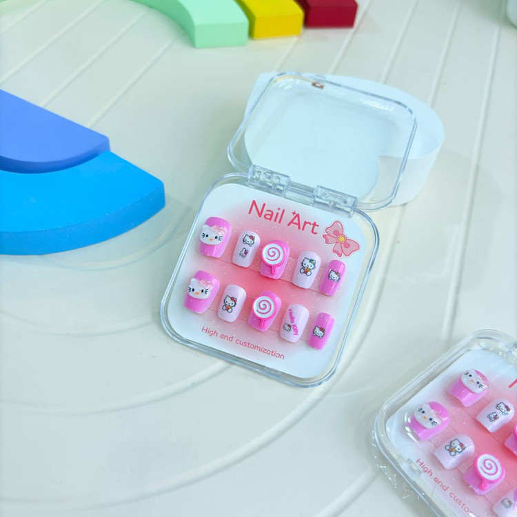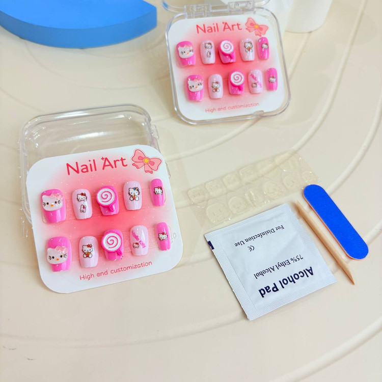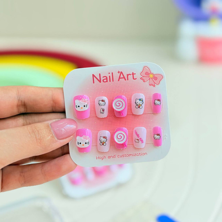 ناخن مصنوعی کودک طرح عروسکی برجسته مجموعه 14 عددی