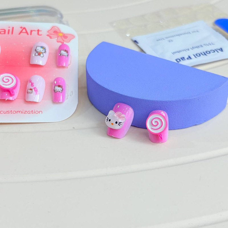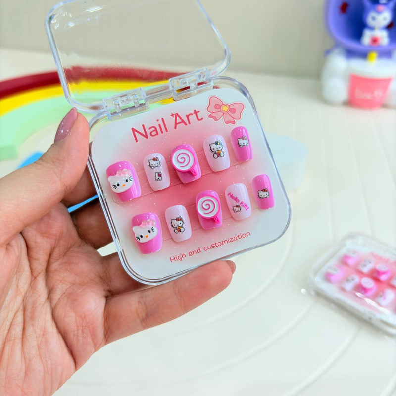 ناخن مصنوعی کودک طرح عروسکی برجسته مجموعه 14 عددی