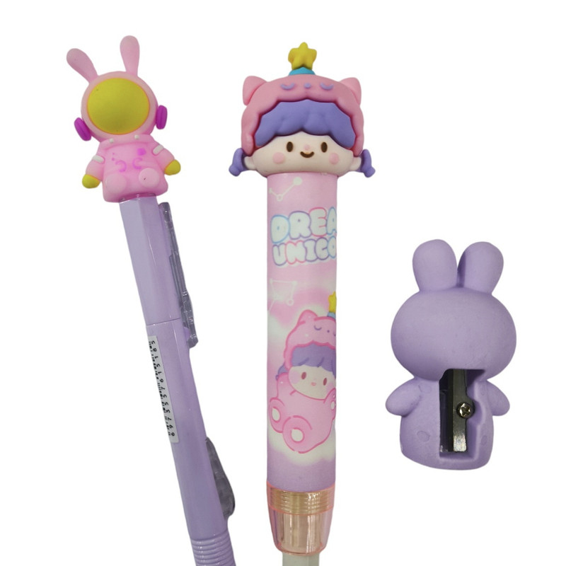 پاک کن اتودی مدل فانتزی به همراه مداد نوکی 0.5 میلی متری و تراش مجموعه 3 عددی